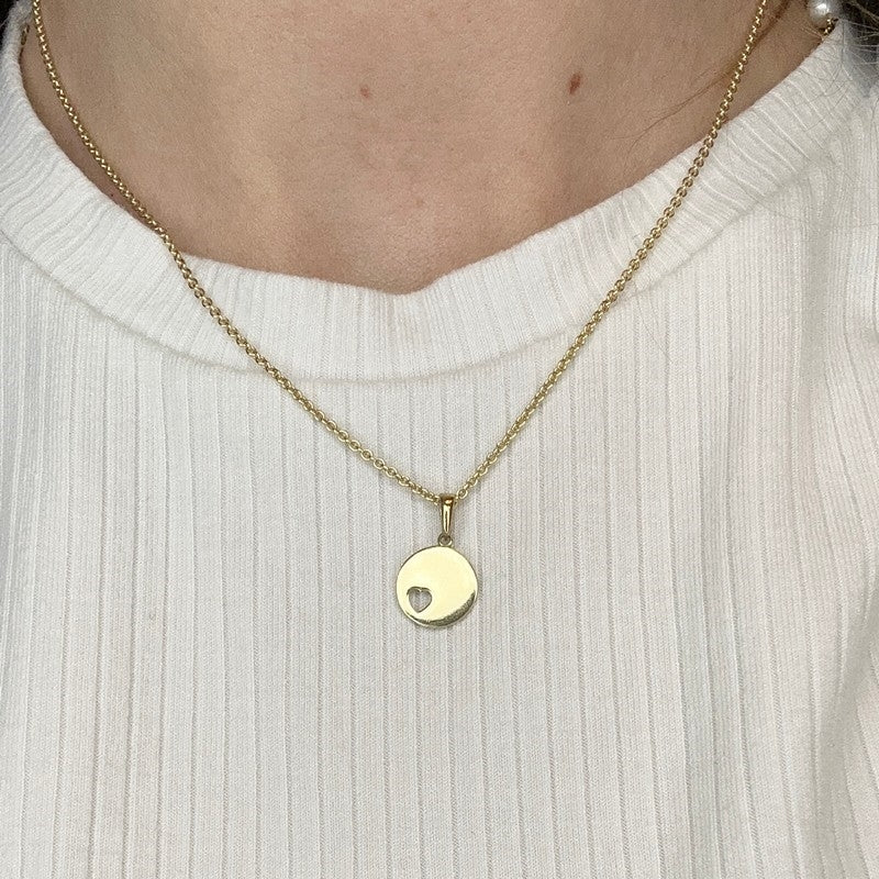 Siersbøl rundt vedhæng med hjerte i 8 kt guld 10 mm