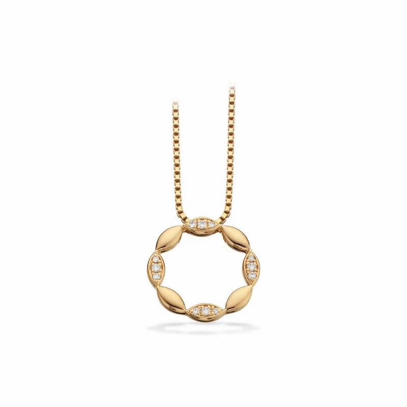 Scrouples halskæde med cirkelvedhæng i 14 kt guld og 0,06 ct diamanter