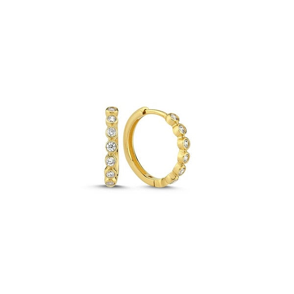 Creolerne fra MELFIA er udført i eksklusivt 14 karat guld, der sammen med de funklende hvide zirkonia giver et raffineret og stilfuldt udtryk. De skinnende sten fanger lyset på smukkeste vis, så du får et feminint og sofistikeret look, uanset anledningen. Den smarte klik-lukning sikrer, at øreringene sidder behageligt og sikkert på øret, så du ubesværet kan bære dem hele dagen.