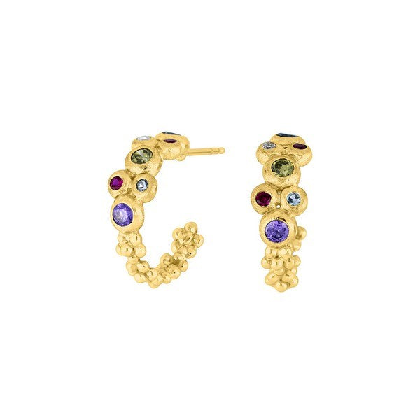 Siersbøl creoler i forgyldt sølv med farvede zirkoner