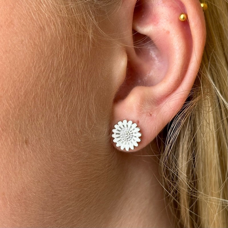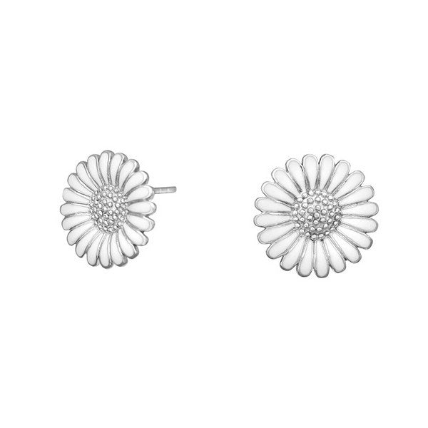Siersbøl marguerit ørestikker i sølv med hvid emalje 10 mm