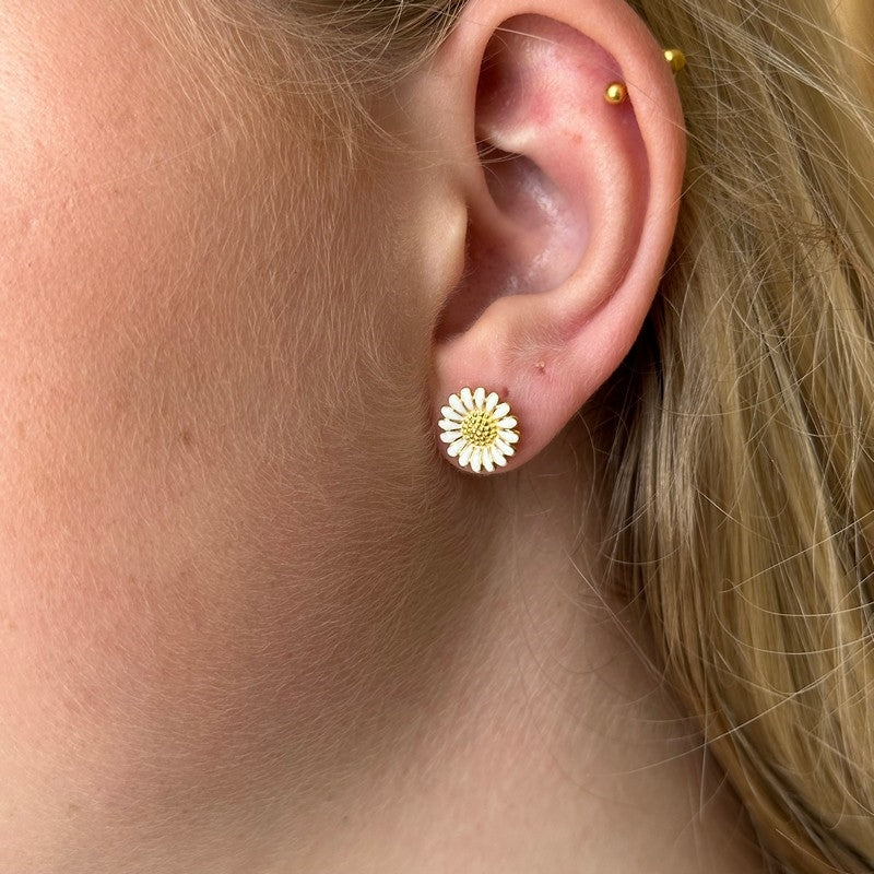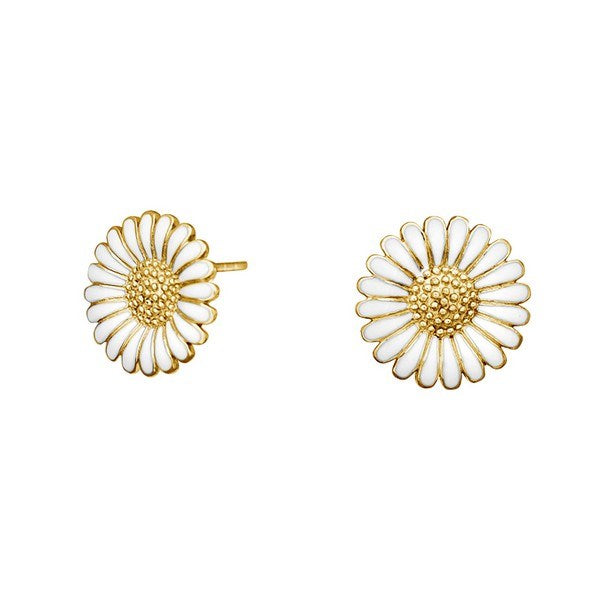 Siersbøl marguerit ørestikker i forgyldt sølv med hvid emalje 10 mm