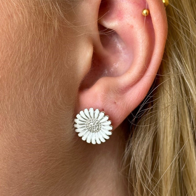 Siersbøl marguerit ørestikker i sølv med hvid emalje 15 mm