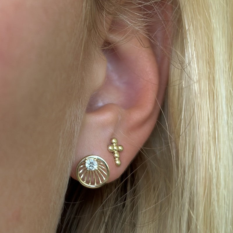 Siersbøl øreringe i 8 kt guld med kuglekors