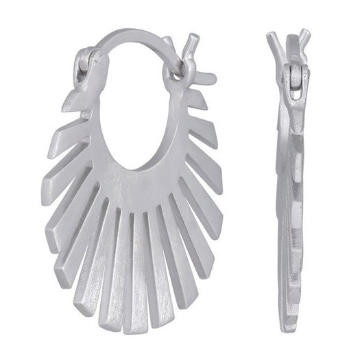 Disse creoler er udført i sølv og har en smuk, mat overflade, som tilfører et diskret og eksklusivt udtryk. Det særlige mønster er inspireret af solens stråler og skaber liv og bevægelse, hver gang de bæres. Med en højde på 20 mm er øreringene små og fine – perfekte til et personligt look, enten alene eller sammen med andre øreringe for et lag-på-lag udtryk. Nordahl Jewellery byder på høj kvalitet og unikke designs, som passer til både hverdag og fest. Uanset din stil, vil disse øreringe fremhæve din naturlige skønhed og give et løft til ethvert outfit.
