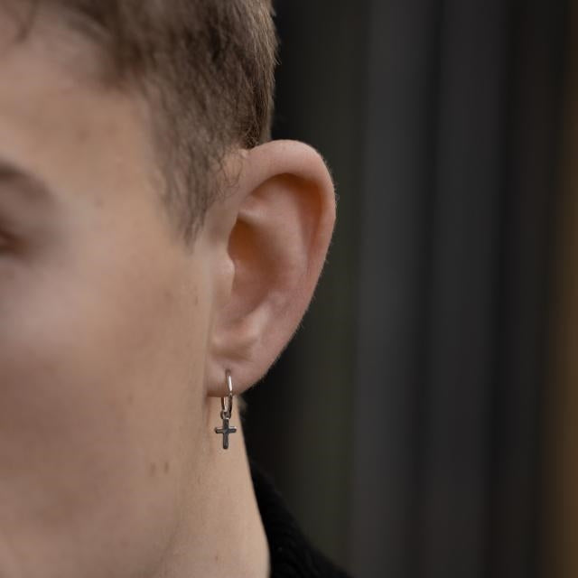 Den rhodinerede sølv creol med kors fra Son of Noa er et moderne og markant valg. Øreringen er udført i skinnende, rhodineret sølv, som giver en flot, blank overflade, der holder sig smuk over tid. Krydsmotivet tilfører et strejf af symbolik og originalitet og passer perfekt til den stilbevidste mand, der tør skille sig ud. Brug creolen alene for et minimalistisk udtryk, eller kombiner med andre smykker fra Son of Noa-serien for et mere personligt look. Uanset om du bærer den til hverdag eller særlige anledninger, giver denne ørering dit outfit en maskulin kant og et stilfuldt touch.