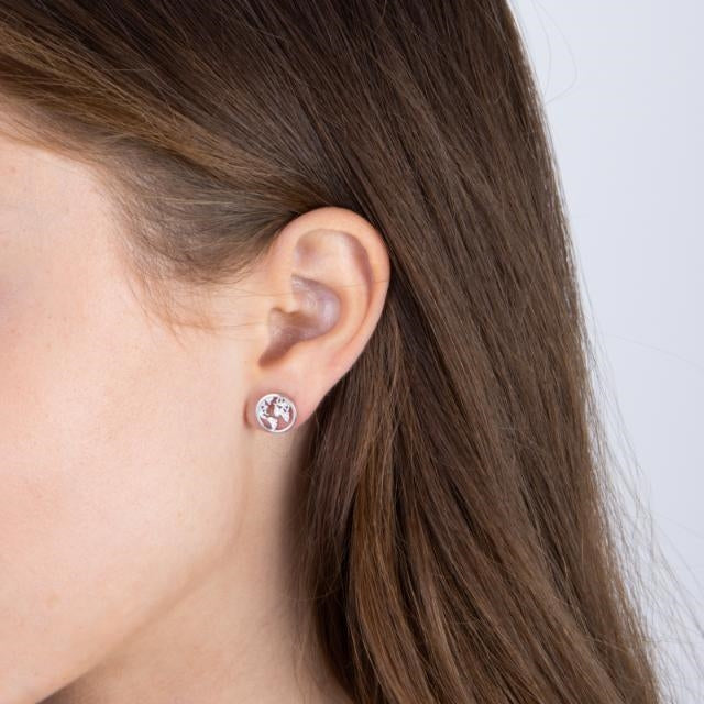 JoanliNor ørestikker i sølv med verdenskort og zirkonia