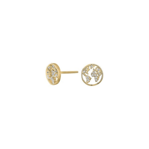 Joanli Nor ETTANOR ørestikkerne er udført i forgyldt sølv og formet som et smukt verdenskort, hvor funklende zirkoner fremhæver de fine detaljer. Smykkerne emmer af enkelhed og raffineret glamour, hvilket gør dem perfekte både til daglig brug og særlige begivenheder. Deres romantiske glød og lette udtryk gør dem alsidige – ideelle til både arbejde, middag eller festlige anledninger. Ørestikkerne er for dig, der ønsker et smykke med personlighed og inspiration fra jordens mange hjørner, og som elsker kombinationen af klassisk gyldent skær og moderne design.