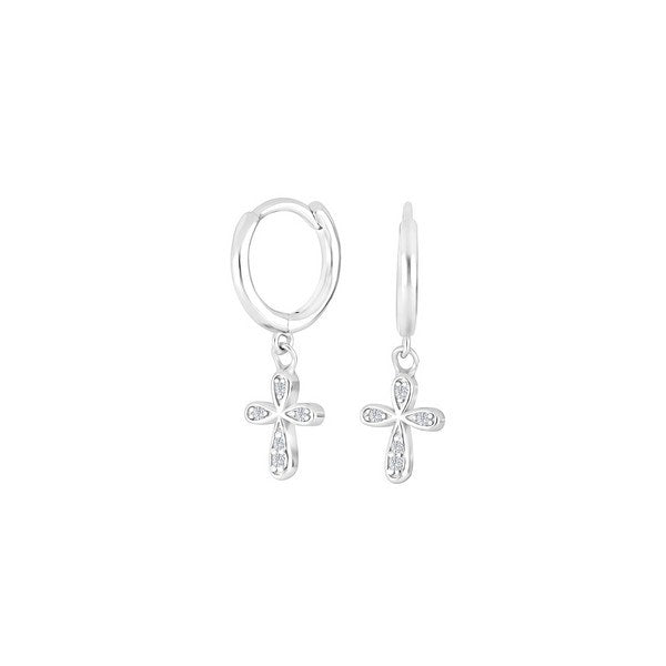 JoanliNor creoler i sølv med korsvedhæng og zirkoner