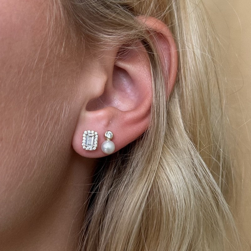 Siersbøl har skabt et sæt øreringe i 8 karat guld, hvor kvalitet og tradition går hånd i hånd. De firkantede zirkonia i centrum er omgivet af mindre funklende sten, og sammen danner de et raffineret og harmonisk look. Med deres mål på 5 x 7 mm er øreringene diskrete, men alligevel iøjnefaldende – perfekte til både hverdagsbrug og festlige lejligheder. Smykket passer til alle, der sætter pris på et klassisk dansk design med et stilfuldt udtryk, der aldrig går af mode.