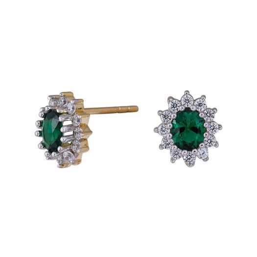 Siersbøl ørestikker i 8 kt guld med smaragd og zirkoner