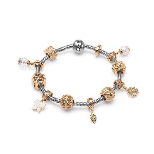 Dette armbånd sælges uden charms, så du kan sætte dit unikke præg med de charms, du holder mest af. Christina Jewelry & Watches har skabt et armbånd, der appellerer til både det klassiske og det moderne – perfekt til dig, der sætter pris på alsidighed i smykkeskrinet.