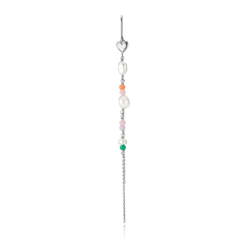 Anne-Sofie x Sistie lang ørering i sølv med hjerte og farvede perler