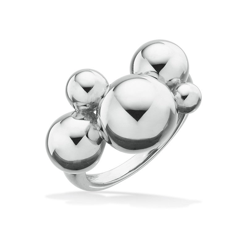 Scrouples’ store kugle ring er udført i rhodineret sterlingsølv og prydet med fem polerede sølvkugler placeret grafisk og harmonisk på ringens top. Det blanke sølv reflekterer lyset smukt og giver ringen et eksklusivt udtryk, der både er tidløst og moderne. Designet gør ringen ideel til både hverdag og fest, hvor den kan bæres alene eller sammen med andre smykker for et lag-på-lag look. Denne ring passer perfekt til dig, der sætter pris på dansk designtradition og ønsker at udtrykke din personlighed på elegant vis. Smuk til enhver lejlighed – uanset om det er et diskret statement på kontoret eller et raffineret touch til særlige øjeblikke.