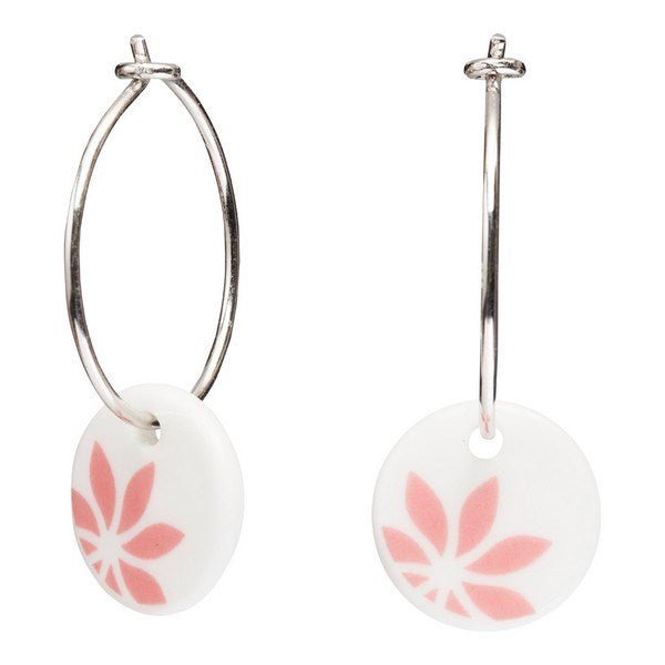 Nordahl Andersen creoler i sølv med hvidt porcelænsvedhæng og rosa blomst 14 mm