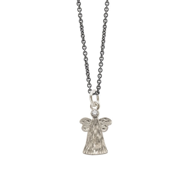 Heiring vedhæng i sølv med rustik skytsengel og zirkonia, lille