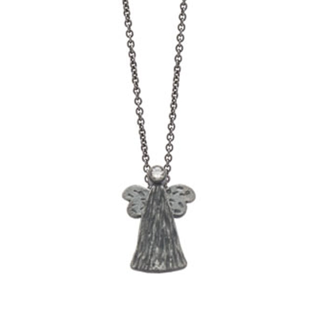 Heiring skytsengel vedhæng i sort rhodineret sølv med zirkonia, stor (18 mm)
