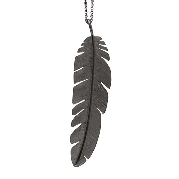 Heiring maxi vedhæng i oxideret sølv formet som fjer