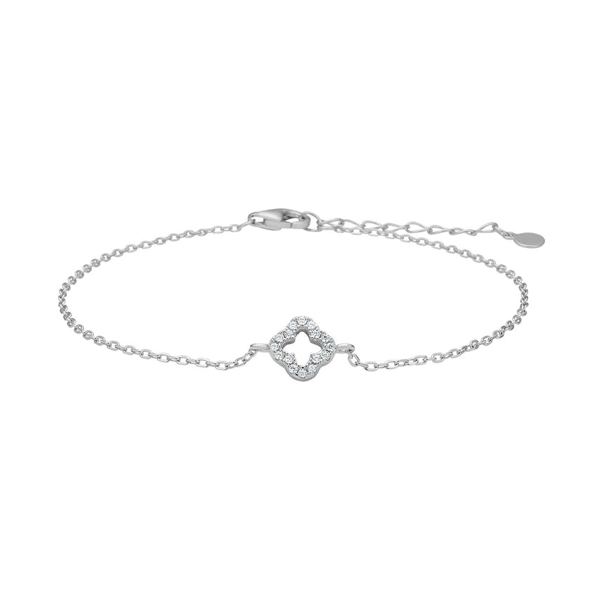 PamelaNor armbånd i sølv fra JoanliNor med hvide zirkonia og firkløvervedhæng 17+3 cm