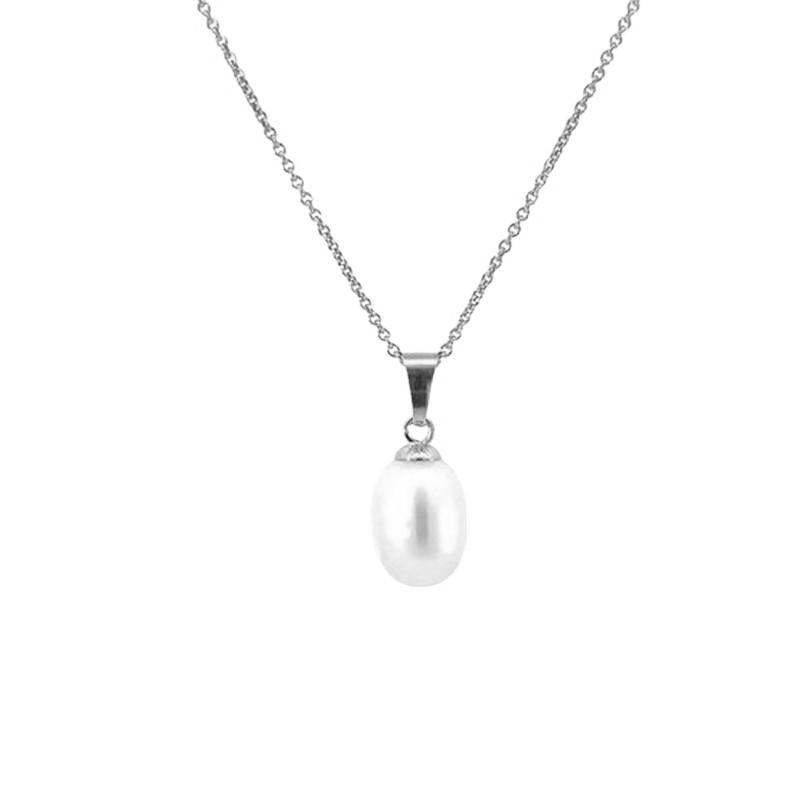 - Vedhæng: Oval hvid ferskvandsperle