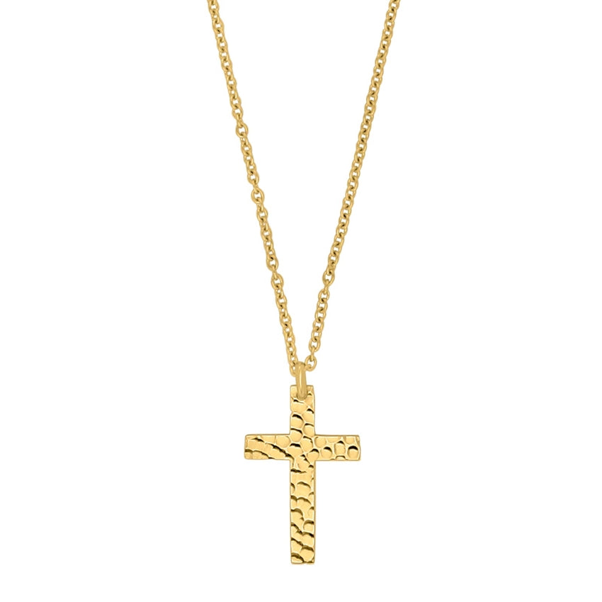 Son of Noa halskæde i IP forgyldt stål med hamret korsvedhæng