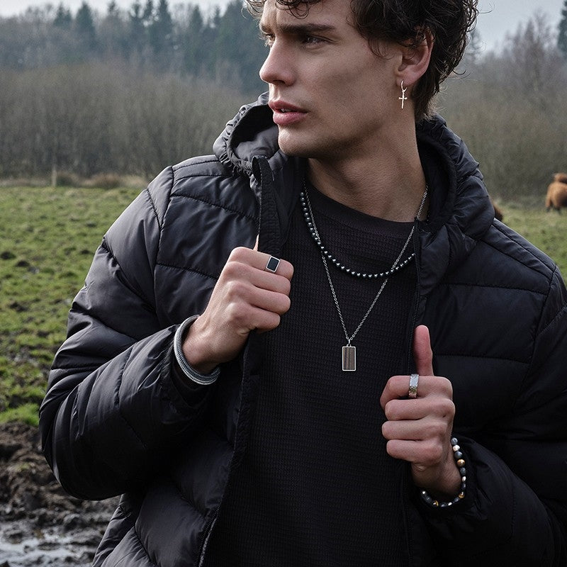 Giv din stil et råt og maskulint udtryk med denne stilfulde halskæde fra Son of Noa. De dybsorte agatperler kombineret med koldstål skaber et moderne og maskulint look, der aldrig går af mode. Her får du et smykke, der signalerer selvsikkerhed og personlighed – perfekt til mænd, der ønsker at udtrykke sig gennem deres accessories.
