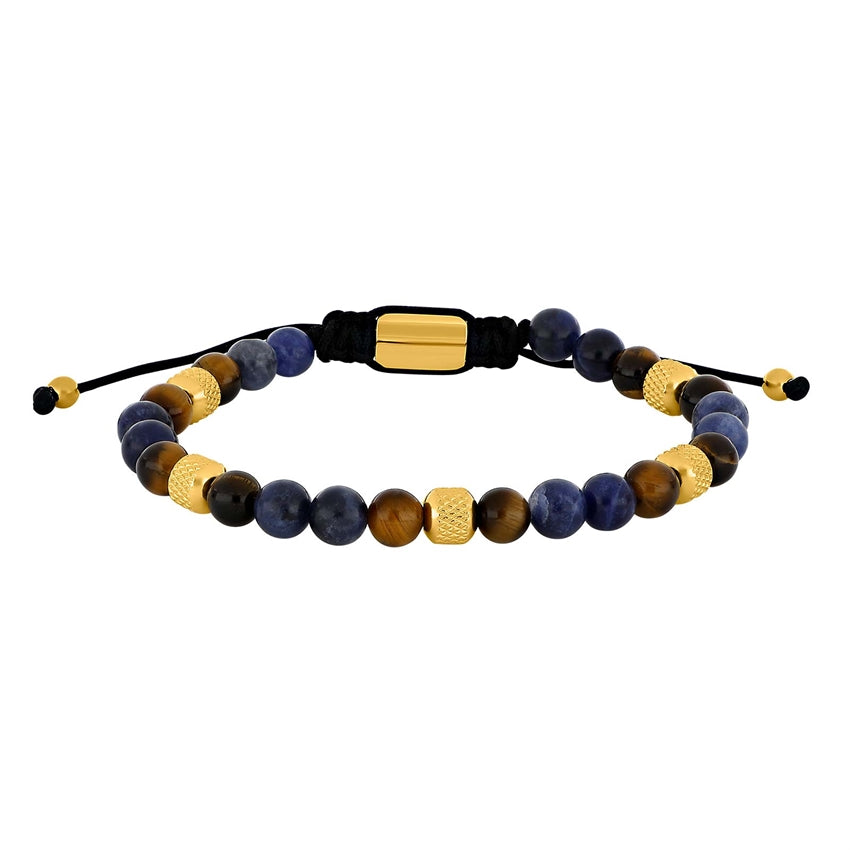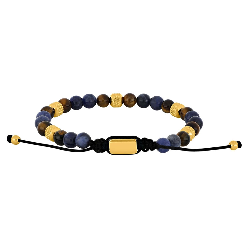 Son of Noa armbånd i IP forgyldt stål med sodalit og tigerøje 19–25 cm