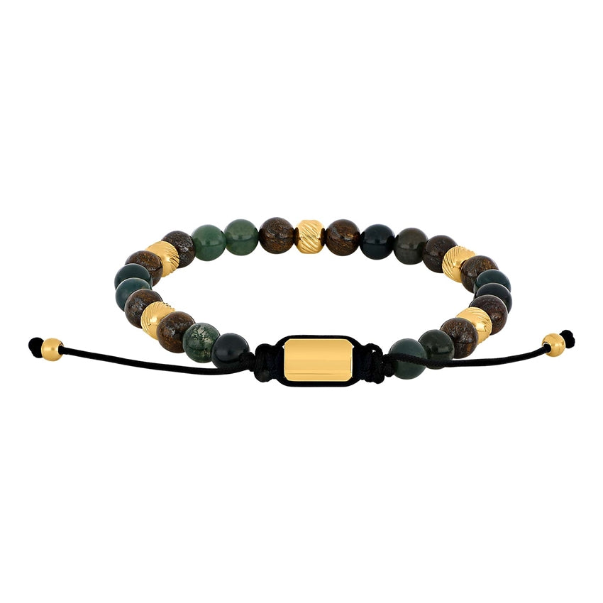 Son of Noa herrearmbånd i IP forgyldt stål med mosagat og bronzitit 19–25 cm