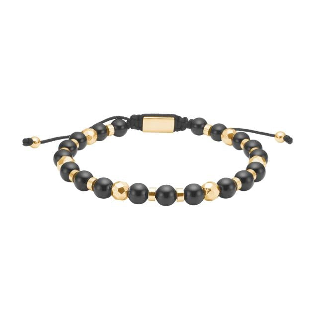 Son of Noa herrearmbånd i IP forgyldt stål med sorte agatperler 19–25 cm
