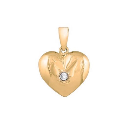 Siersbøl hjertevedhæng i 8 karat guld med zirkon, 13 mm