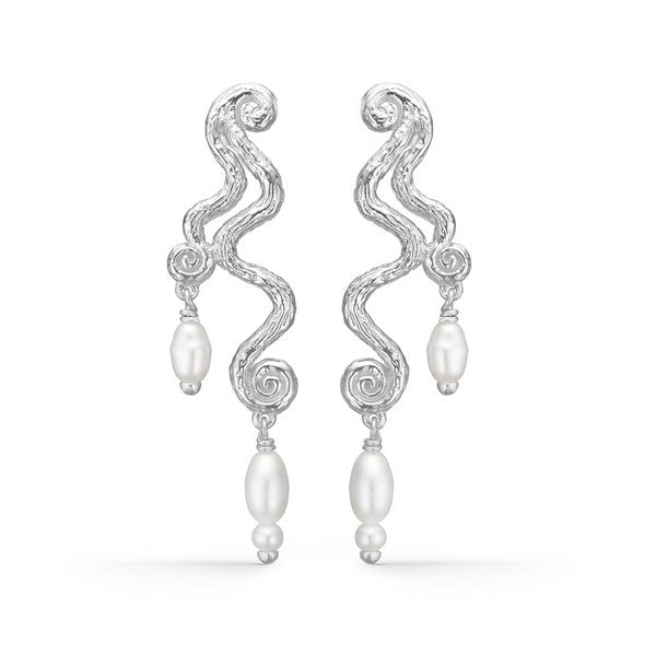 Wave ørestikker i sølv med ferskvandsperler fra Studio Z