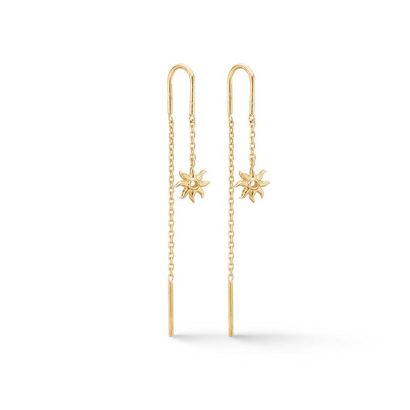 Studio Z Ocean Aura er lange, feminine kædeøreringe, inspireret af havets flydende organiske former og stille strømme. De er udført i 925 sterlingsølv, forgyldt med 14 karat guld, hvilket giver dem en varm, smuk glød og et raffineret look. Øreringene følger ørets naturlige linjer og falder elegant ned ad kinden, hvor de skaber både subtil bevægelse og iøjnefaldende lethed. Den minimalistiske og elegante form gør dem oplagte både til hverdagsbrug og festlige lejligheder – uanset om du ønsker et klassisk eller moderne udtryk. Ocean Aura passer perfekt til dig, der drømmer om et alsidigt smykke med naturens ro og dansk design i fokus. Kombinér dem gerne med andre øreringe fra samme Studio Z-serie, især hvis du har flere huller, og skab dit helt eget personlige look. Studio Z, designet af Sara Ziegler, er kendt for sine stilrene smykker, hvor kvalitet og inspiration fra naturen går hånd i hånd.