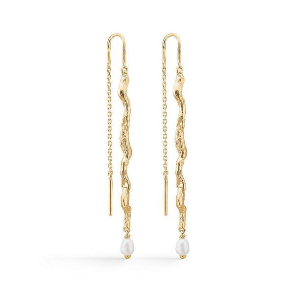Tangled perleøreringe fra Studio Z i 18 karat forgyldt sølv med kulturperle
