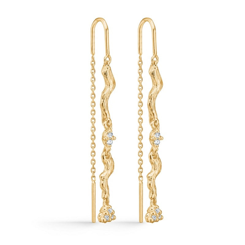 Tangled ørekæder fra Studio Z i 18 karat forgyldt sølv med hvide zirkonia