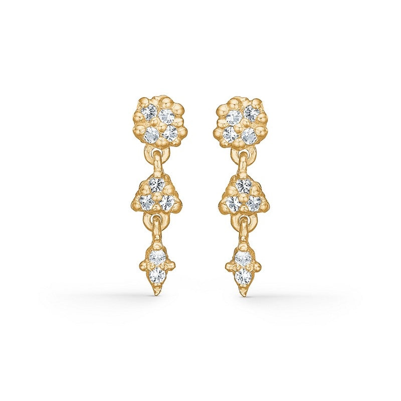 Cluster øreringe fra Studio Z i 18 karat forgyldt sølv med hvide zirkonia