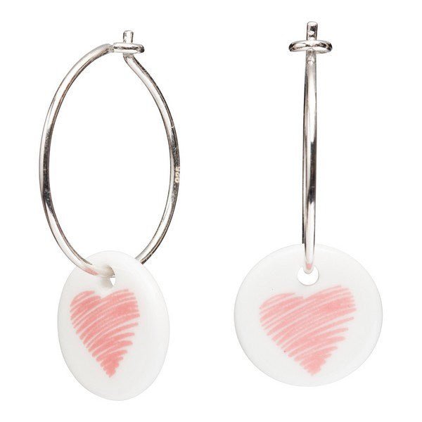 Porcelæn creoler i sølv med rosa hjerte fra Nordahl Andersen