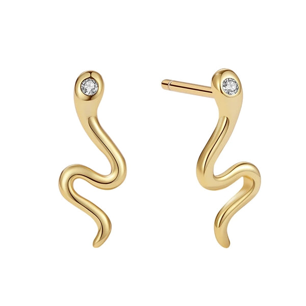 Snake ørestikker i 18 karat forgyldt sølv med hvide zirkonia fra ByBirch