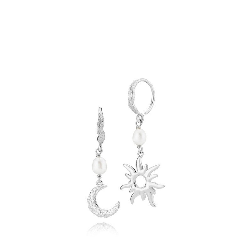 Disse øreringe fra Sistie er udført i ægte sterlingsølv og forener smukt det himmelske og det jordnære. Det ene øre smykkes af en strålende sol, mens det andet prydes af en yndefuld måne, begge dekoreret med små fine perler, som giver smykket et delikat og feminint udtryk. Den asymmetriske sammensætning giver et moderne og stilfuldt look, der både kan bæres til hverdag og festlige anledninger. Øreringene skaber opmærksomhed, men er samtidig lette at matche med resten af din smykkesamling, så du kan skabe din egen unikke kombination.