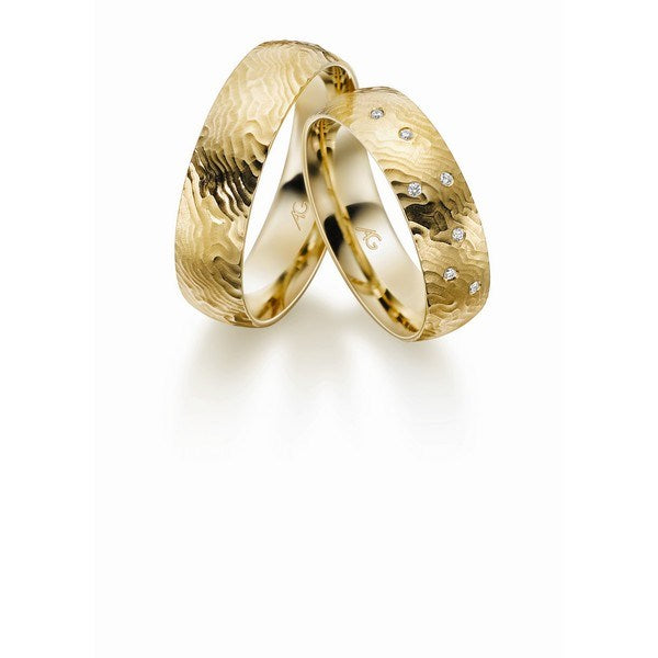 Unikke Gerstner vielsesringe i 14 eller 9 karat guld med organisk overflade og 0,03 ct diamanter