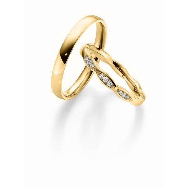 Smukt sæt Gerstner vielsesringe i 9 eller 14 karat guld med 9 diamanter (0,06 ct)
