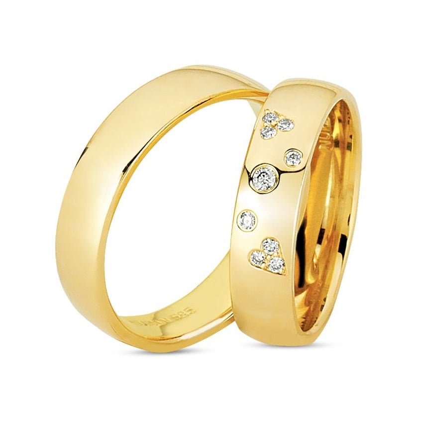 Nuran vielsesringe i 8 eller 14 karat guld med 9 diamanter 0,10 ct