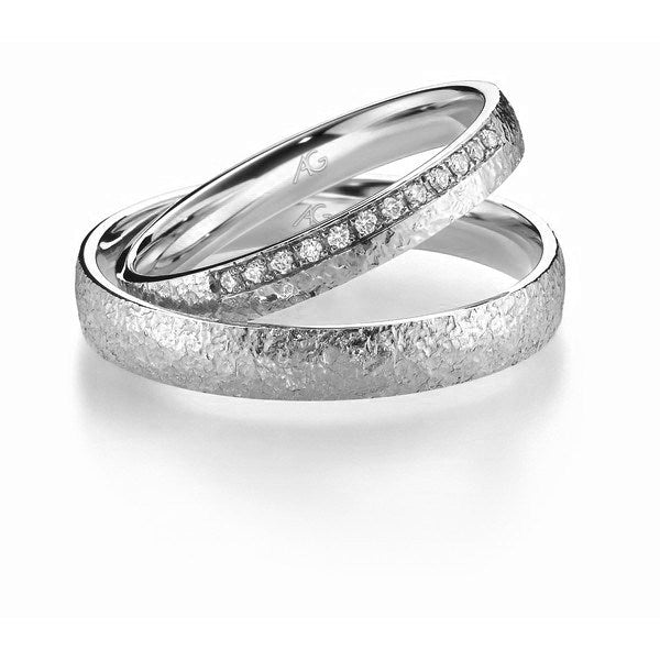 Eksklusivt Gerstner vielsesringesæt i 14 karat hvidguld med 12 diamanter