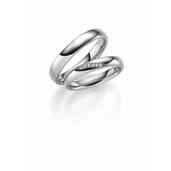 Stilrent Gerstner vielsesringsæt i 14 karat hvidguld med 5 diamanter (0,025 ct)