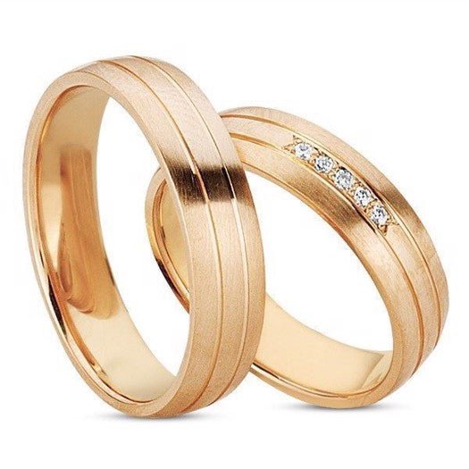 Nuran har skabt disse vielsesringe i 14 karat rosa guld, hvor dameringen er prydet af 5 funklende diamanter på hver 0,01 ct., samlet 0,05 ct. Diamanterne er elegant indfattet og tilføjer diskret eksklusivitet. Siden 1998 har Nuran været kendt for håndværk, kvalitet og passion for unikke vielsesringe. Designet er både tidløst og moderne, hvilket sikrer, at ringene passer til enhver stil og lejlighed – fra det store øjeblik ved alteret til kærlighedens små hverdagsøjeblikke. Velegnet til par, der ønsker at markere livets vigtigste dag med noget ekstraordinært og ægte.