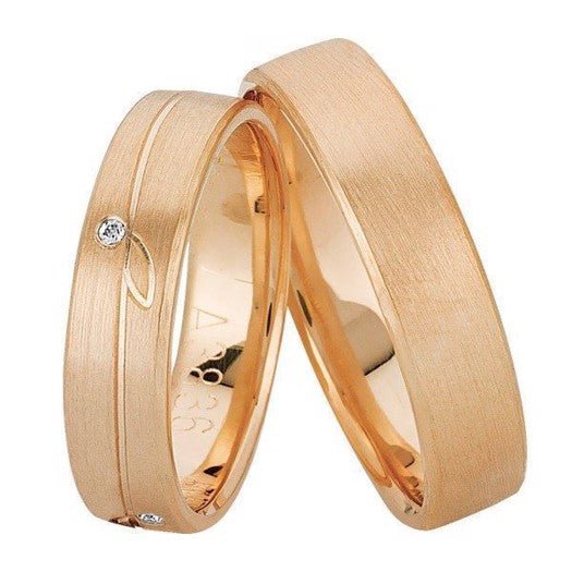 Smukke Nuran vielsesringe i 14 karat guld med 0,04 ct diamant og bladmotiv