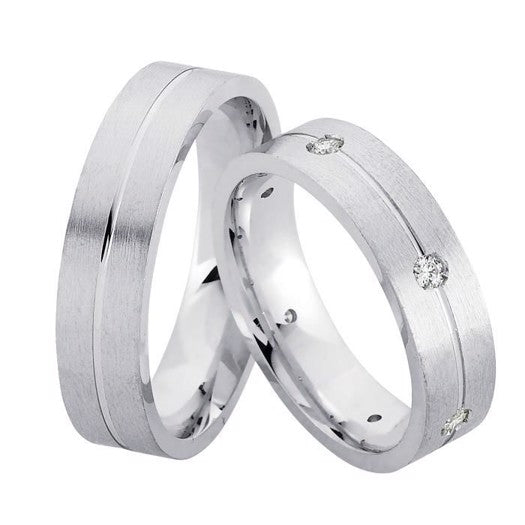 Unikke Nuran vielsesringe i rhodineret sølv med 6 x 0,03 ct diamanter