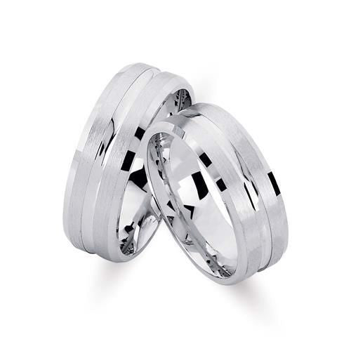 Unikke Nuran vielsesringe i rhodineret sølv med grafisk linjemønster, 7 mm
