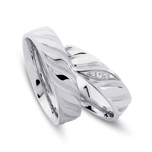 Unikke Nuran vielsesringe i rhodineret sølv med 3 zirkonia