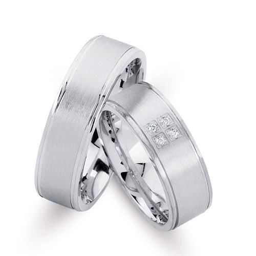 Denne model fås som sæt, hvor herre- og dameringen matcher i design – med fire zirkonia på dameringen for et feminint touch. Andre størrelser og muligheder kan udforskes indenfor Nuran vielsesringe-kollektionen.