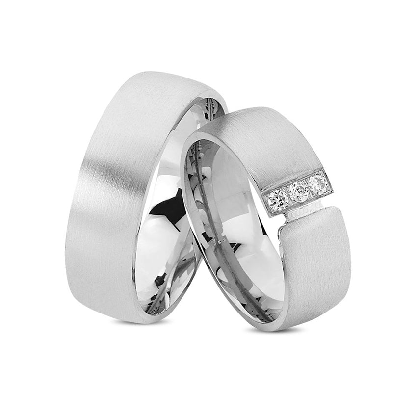 Unikke Nuran vielsesringe i rhodineret sølv med 3 zirkonia, 7 mm